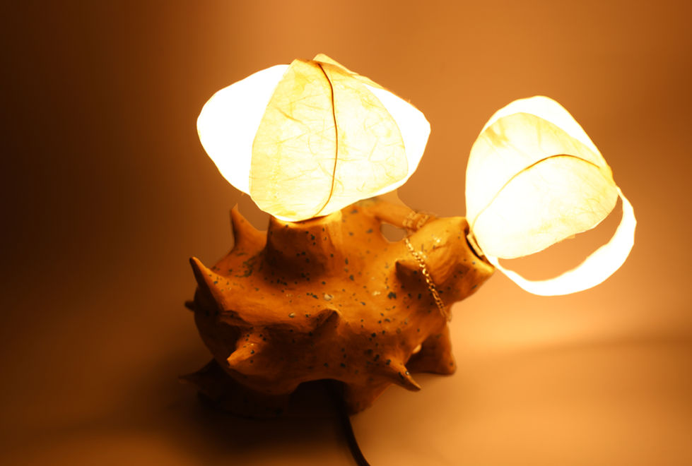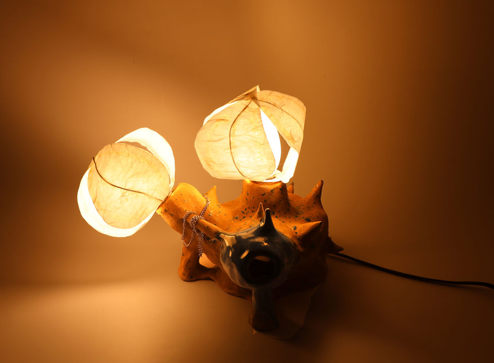 Ceramic, glaze, washi paper, wire, wired lightbulb